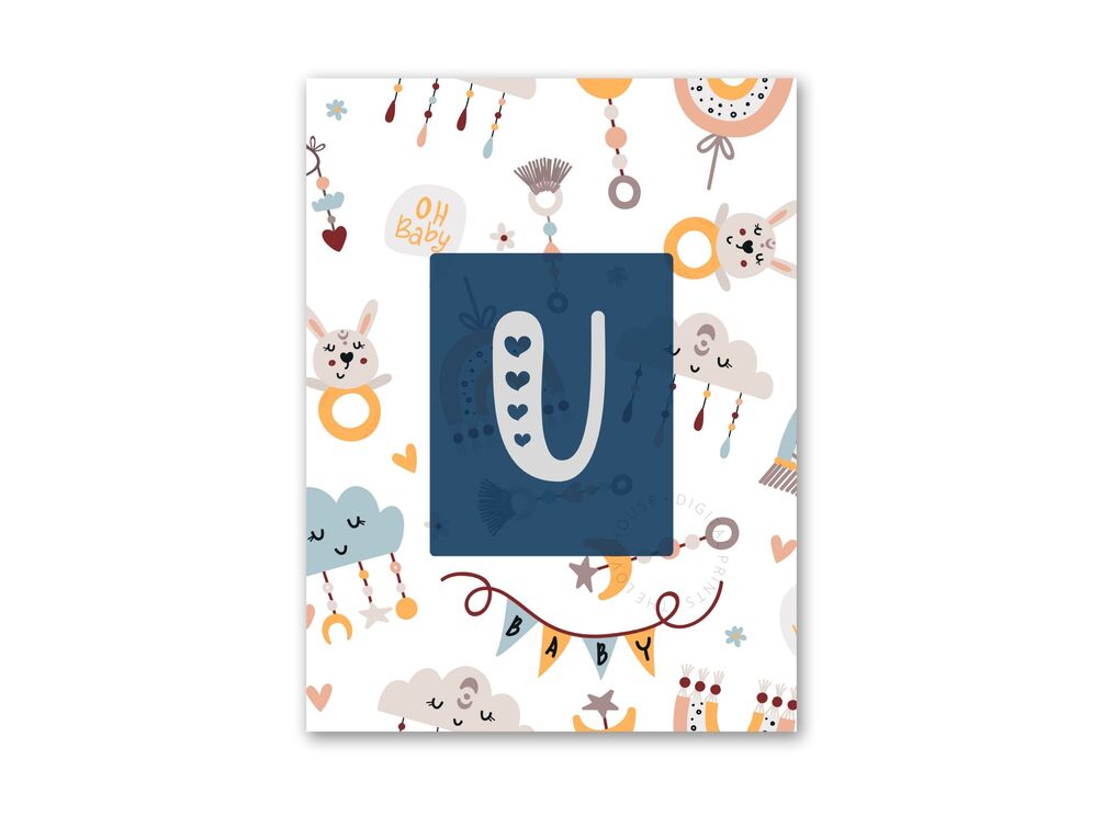CAPITAL LETTER U • BLUE HEART ALPHABET • DIGITAL PRINT