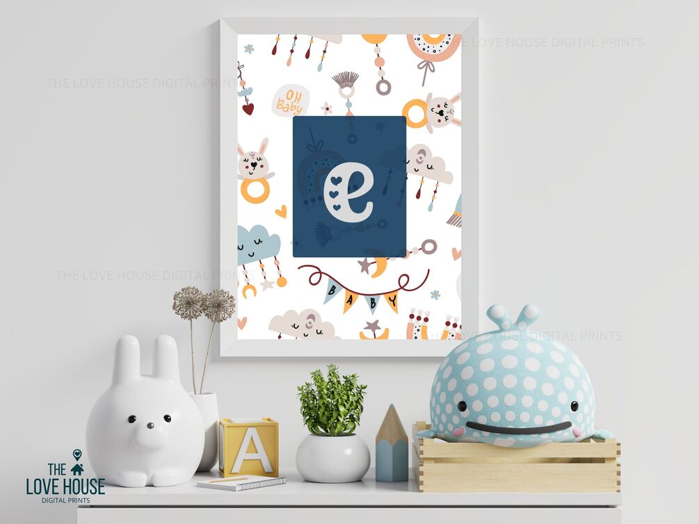 Small Letter E • Blue Heart Alphabet • Printable Wall Art • Nursery Decor • Digital File