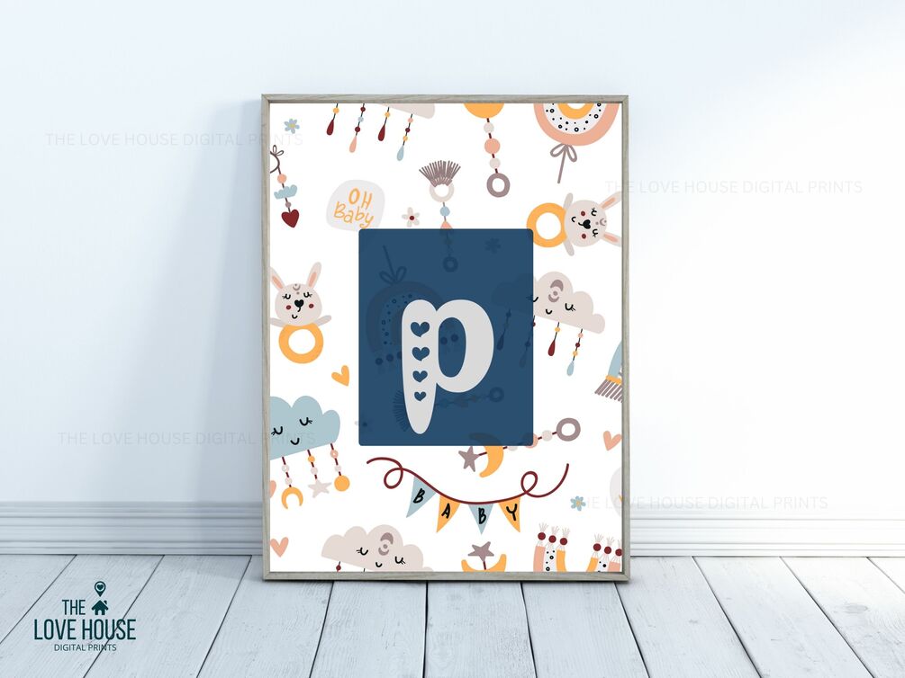 Small Letter P • Blue Heart Alphabet • Printable Wall Art • Nursery Decor • Digital File