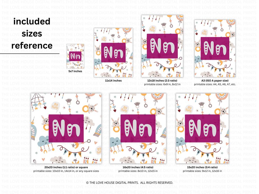 BIG AND SMALL LETTER N • PINK HEART ALPHABET • DIGITAL PRINT