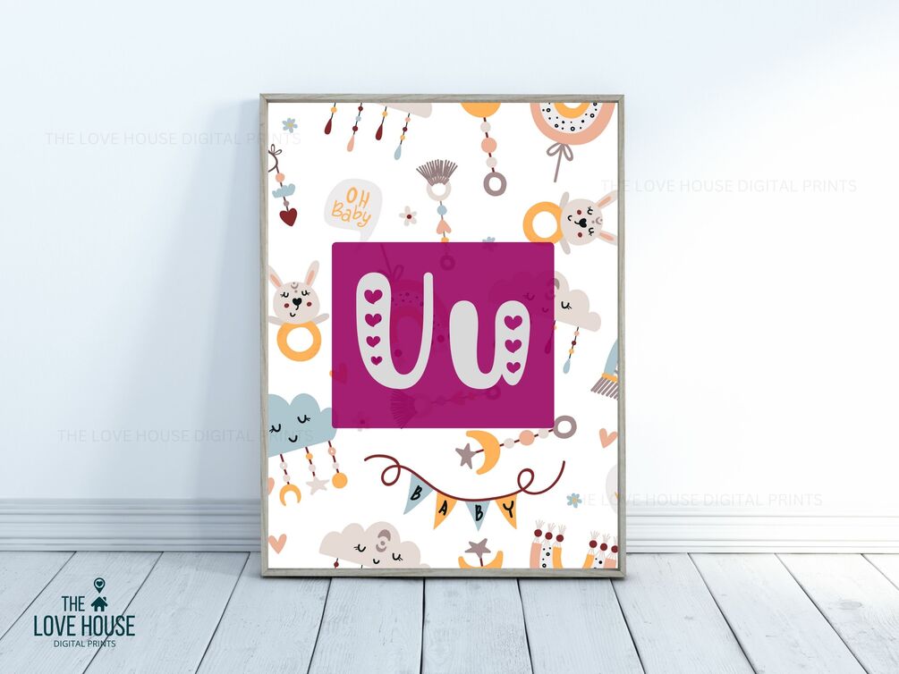 BIG AND SMALL LETTER U • PINK HEART ALPHABET • DIGITAL PRINT