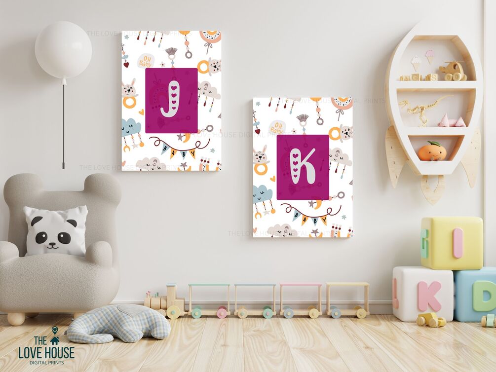 Capital Letter J • Pink Heart Alphabet • Printable Wall Art • Nursery Decor • Digital File