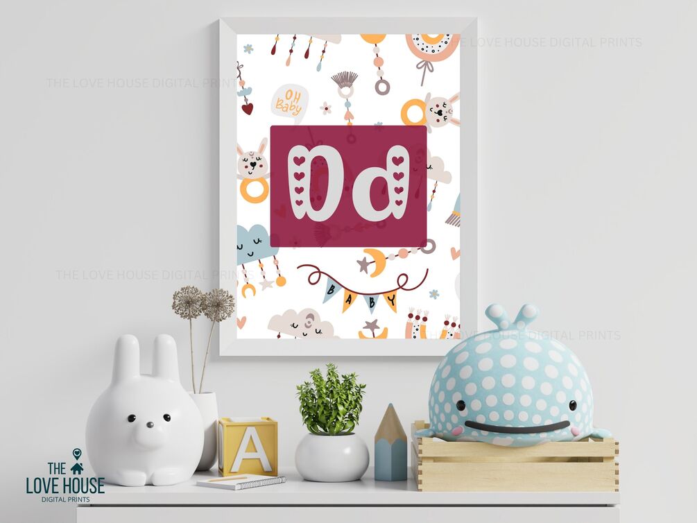 BIG AND SMALL LETTER D • RED HEART ALPHABET • DIGITAL PRINT