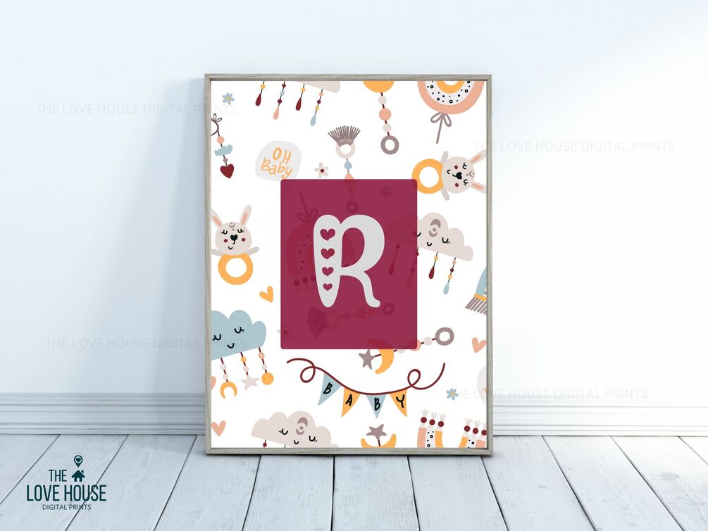 CAPITAL LETTER R • RED HEART ALPHABET • DIGITAL PRINT